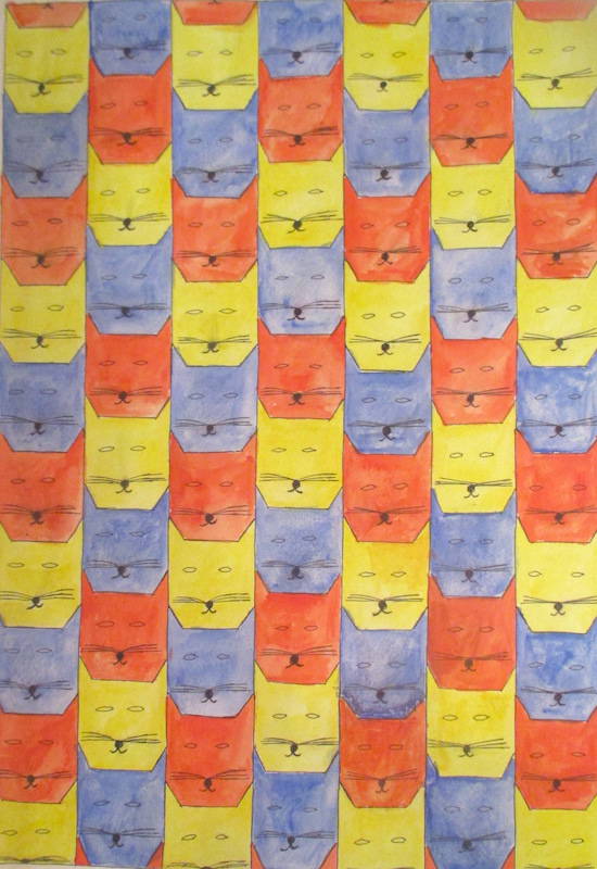 Herhaling - kattenkoppen - pen en aquarel